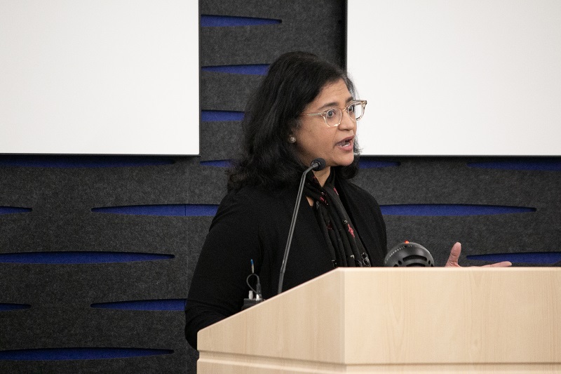 Great River Energy’s Priti Patel, vice president and chief transmission officer, spoke during the event, which was held at the Minnesota Power headquarters in Duluth. Patel spoke about the energy transformation that is happening in Minnesota and across the country, and the important role new transmission will play in creating a clean energy future that remains safe, affordable and reliable.